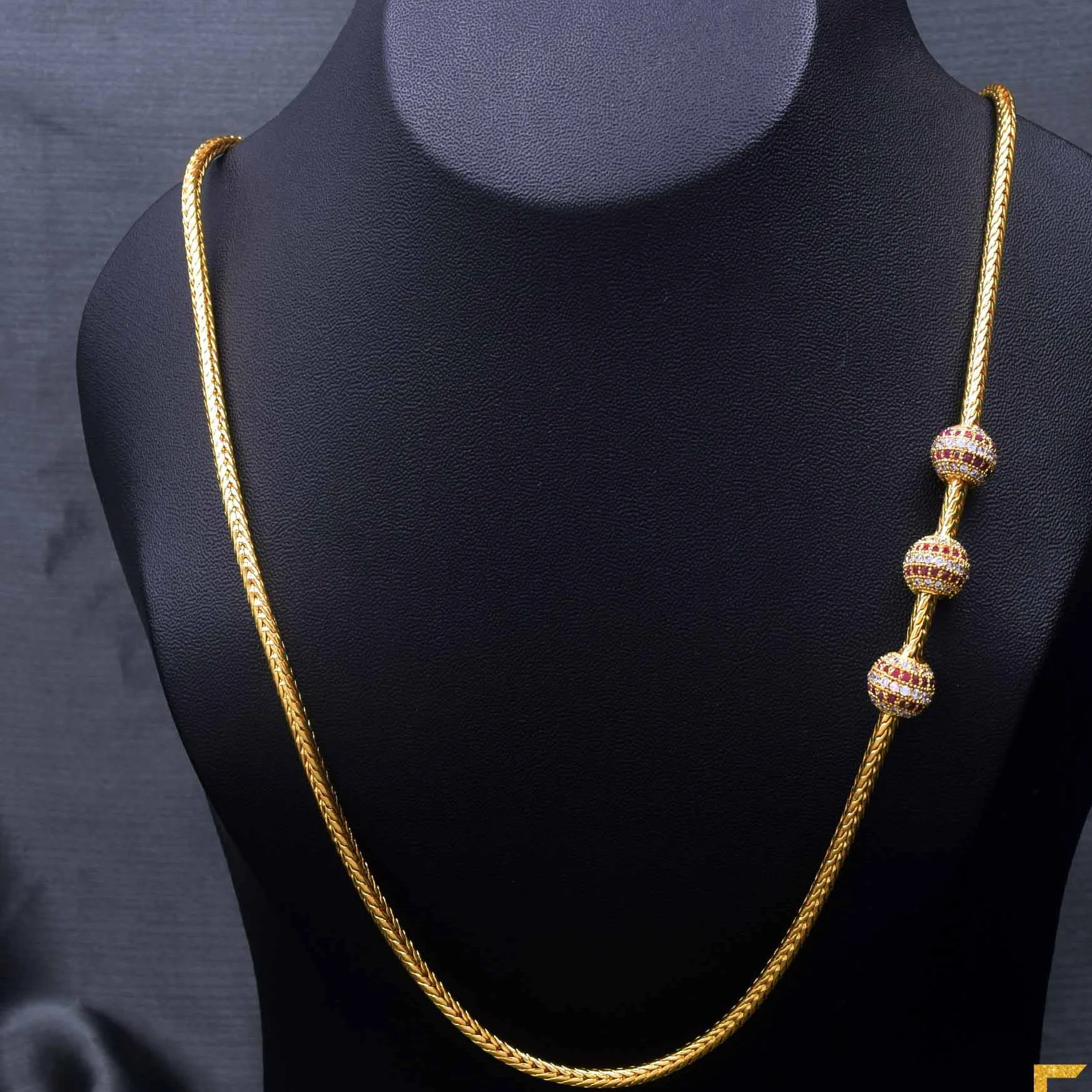 Thalikkodi Wedding V Cut Rope chain mugappu chain with Ball Pendent new model designs Fashionable and Stylish Gold plated Chain