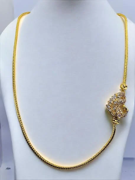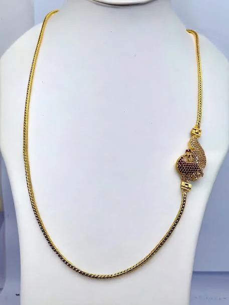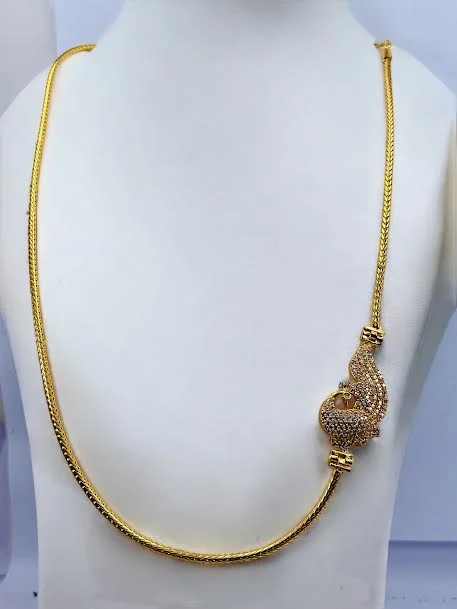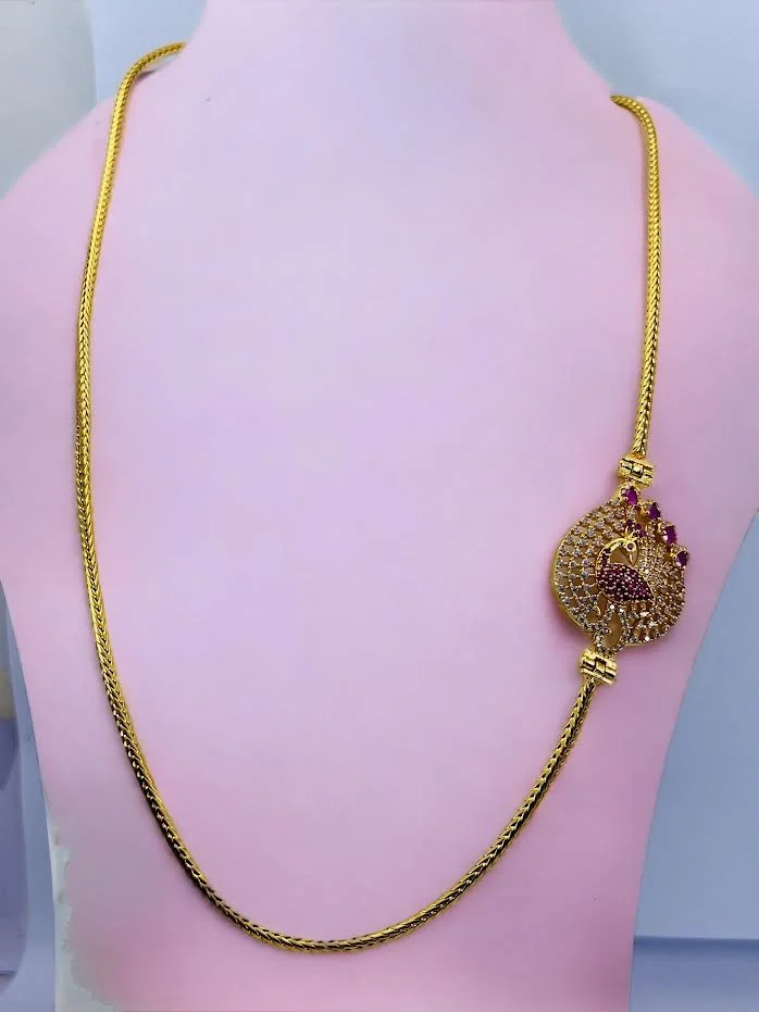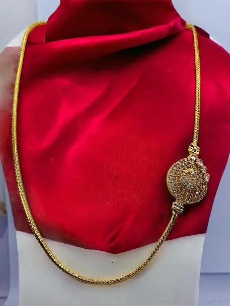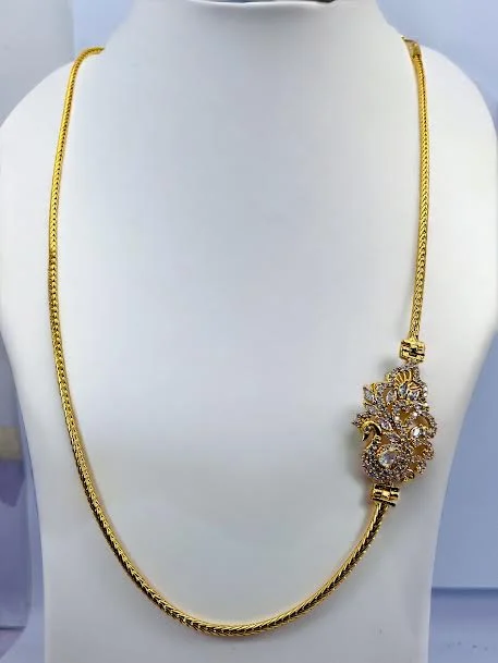 Thalikkodi Wedding ROPE chain mugappu chain with gold color peacock Pendent With white stone new model designs Fashionable and Stylish Gold-plated Chain