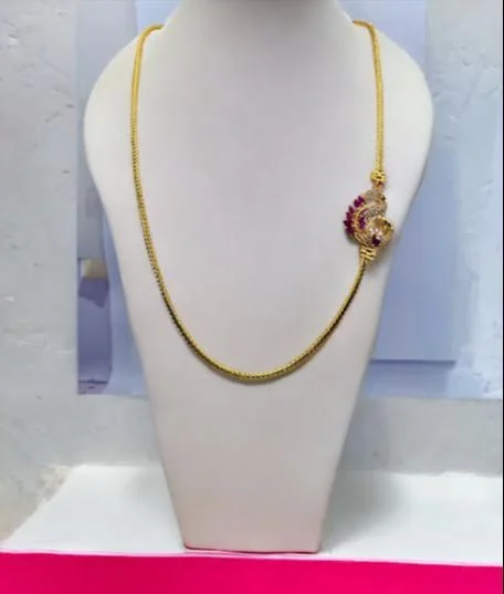 Thalikkodi Wedding ROPE chain mugappu chain with gold color ROUND peacock Pendent With white and red new model designs Fashionable and Stylish Gold-plated Chain