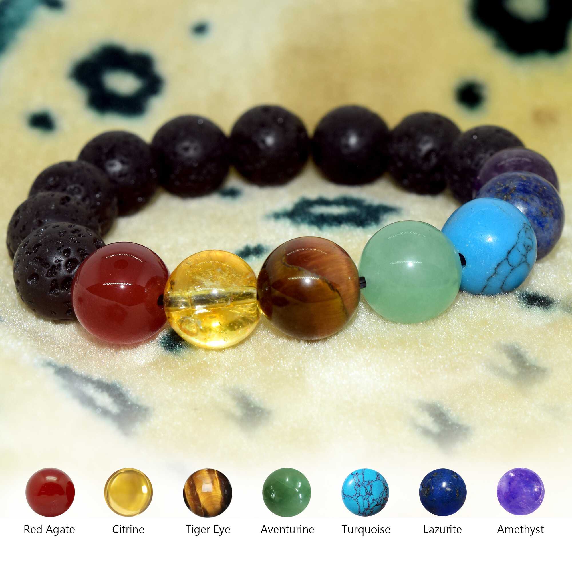 You can use the bracelet to channel your focus into keeping your chakras open and healthy. Your mind, body, and soul are all connected in a beautiful circular manner and having awareness of each chakra can help heal imbalances in one area of the body and bring all of the others back into balance.