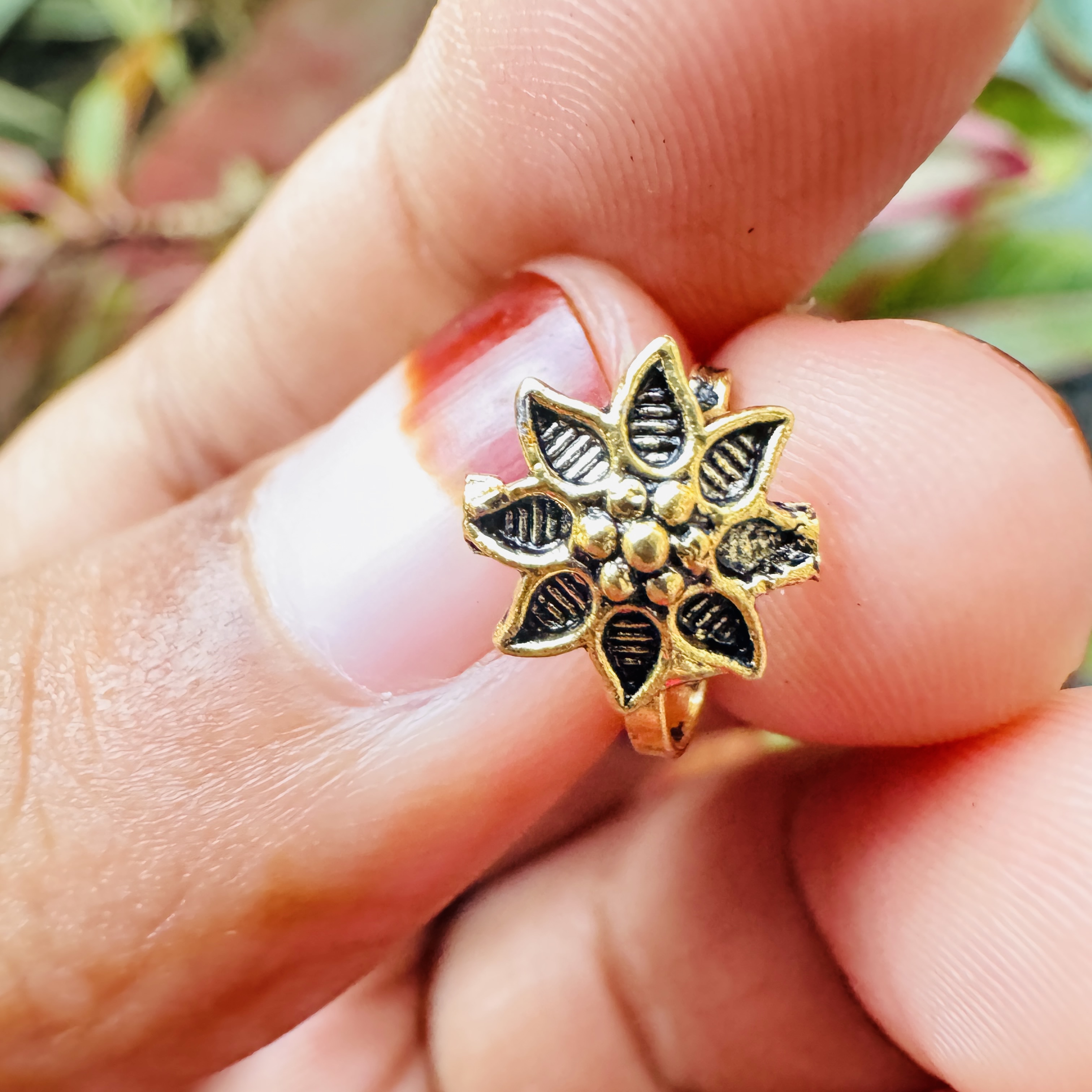 ? Gold color Indian Traditional non-piercing Nose pin for women.