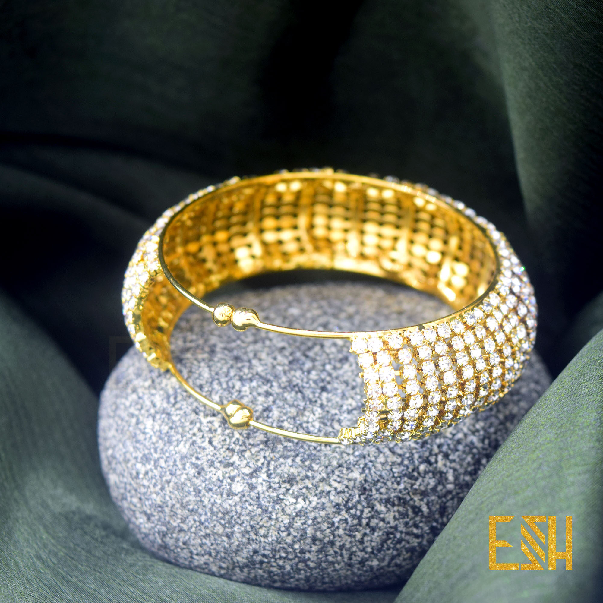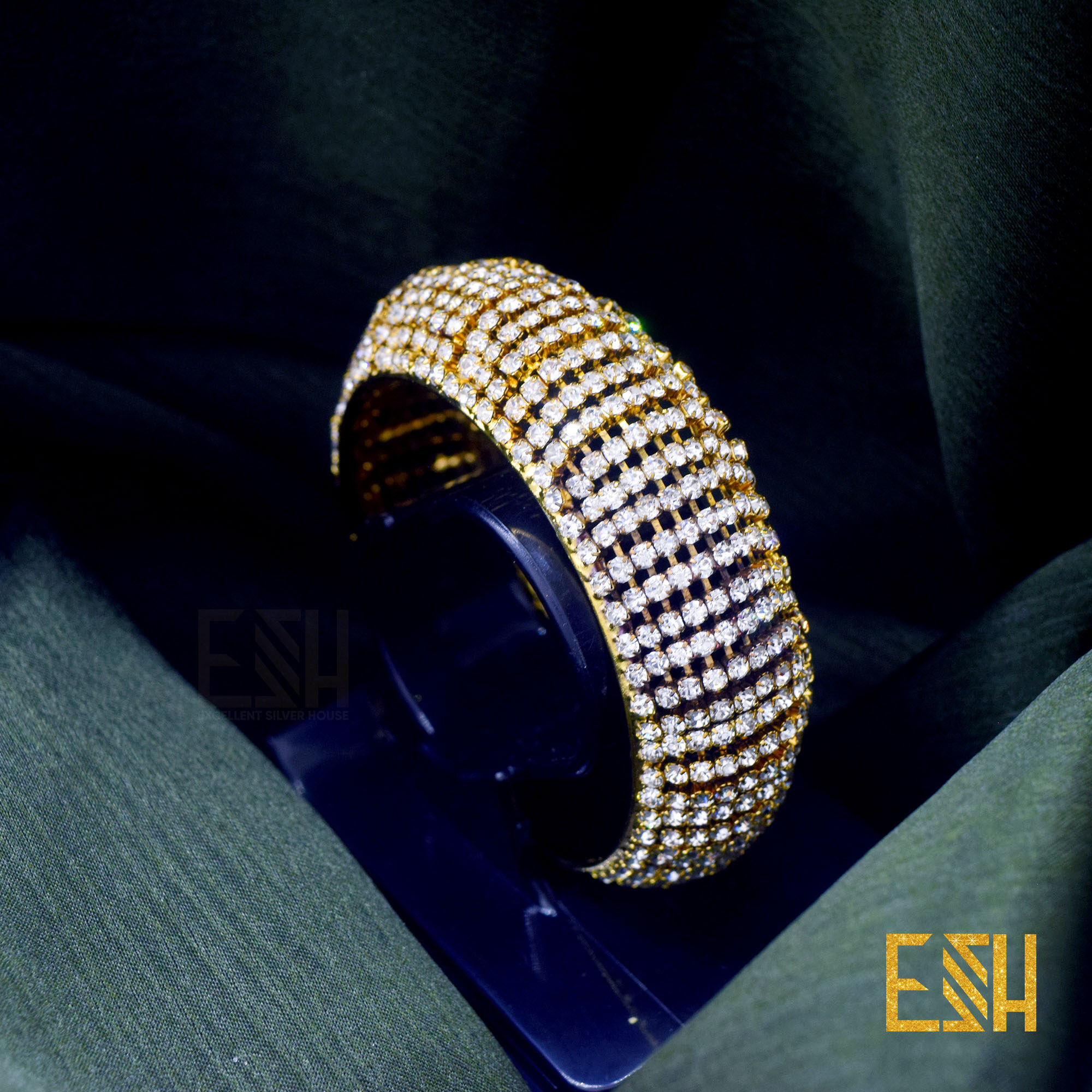 ESH Fancy Gold New Arrived Free Size Big Bangle Bracelet With Full White Stone For Women Gift ( Fit For Any Hand )