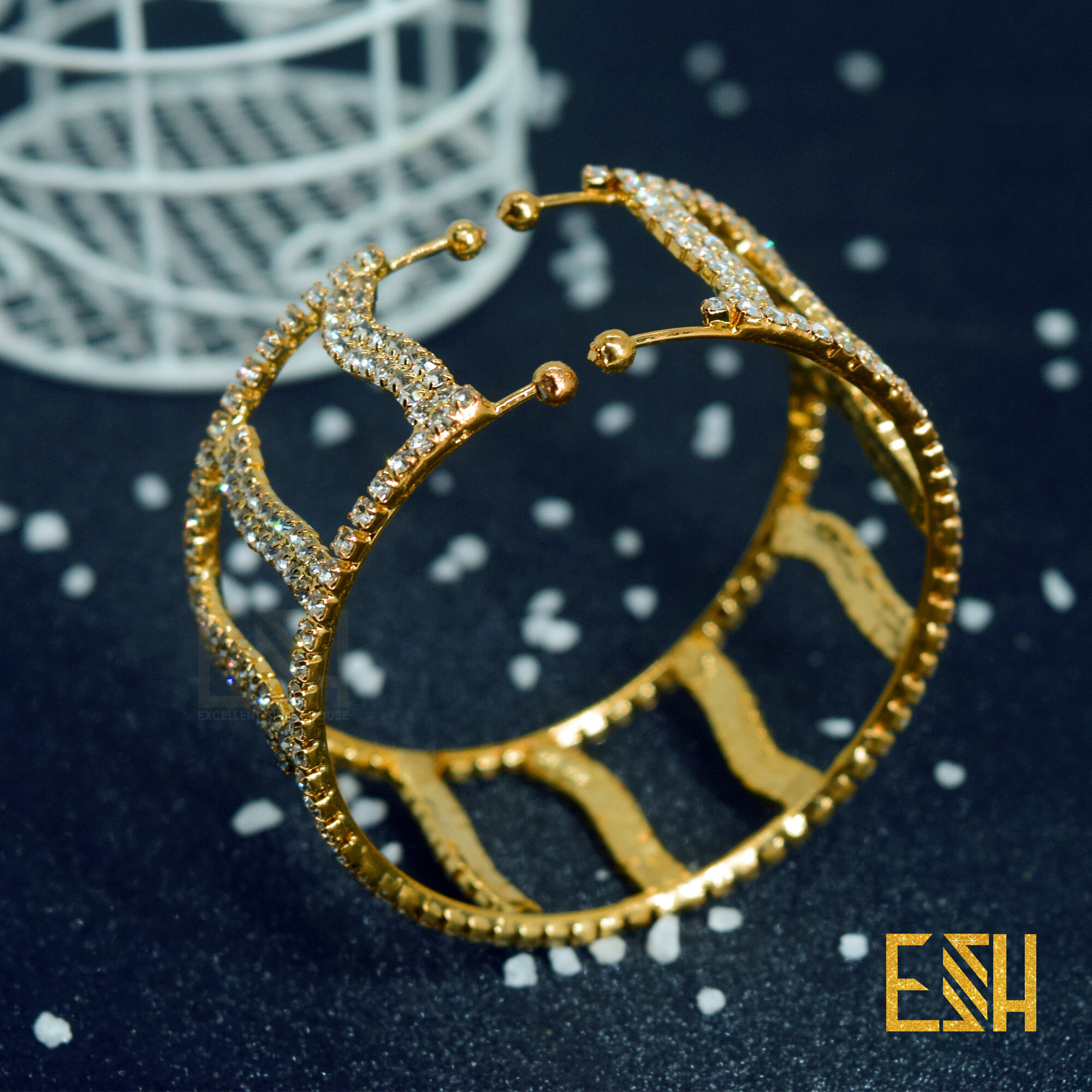 Be the first to review “ESH Fancy Gold Stylish Free Size Bangle With Full White Stone For Women”