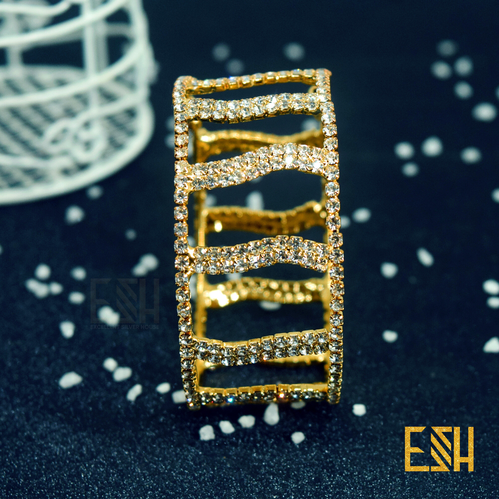 ESH Fancy Gold Stylish Free Size Bangle With Full White Stone For Women