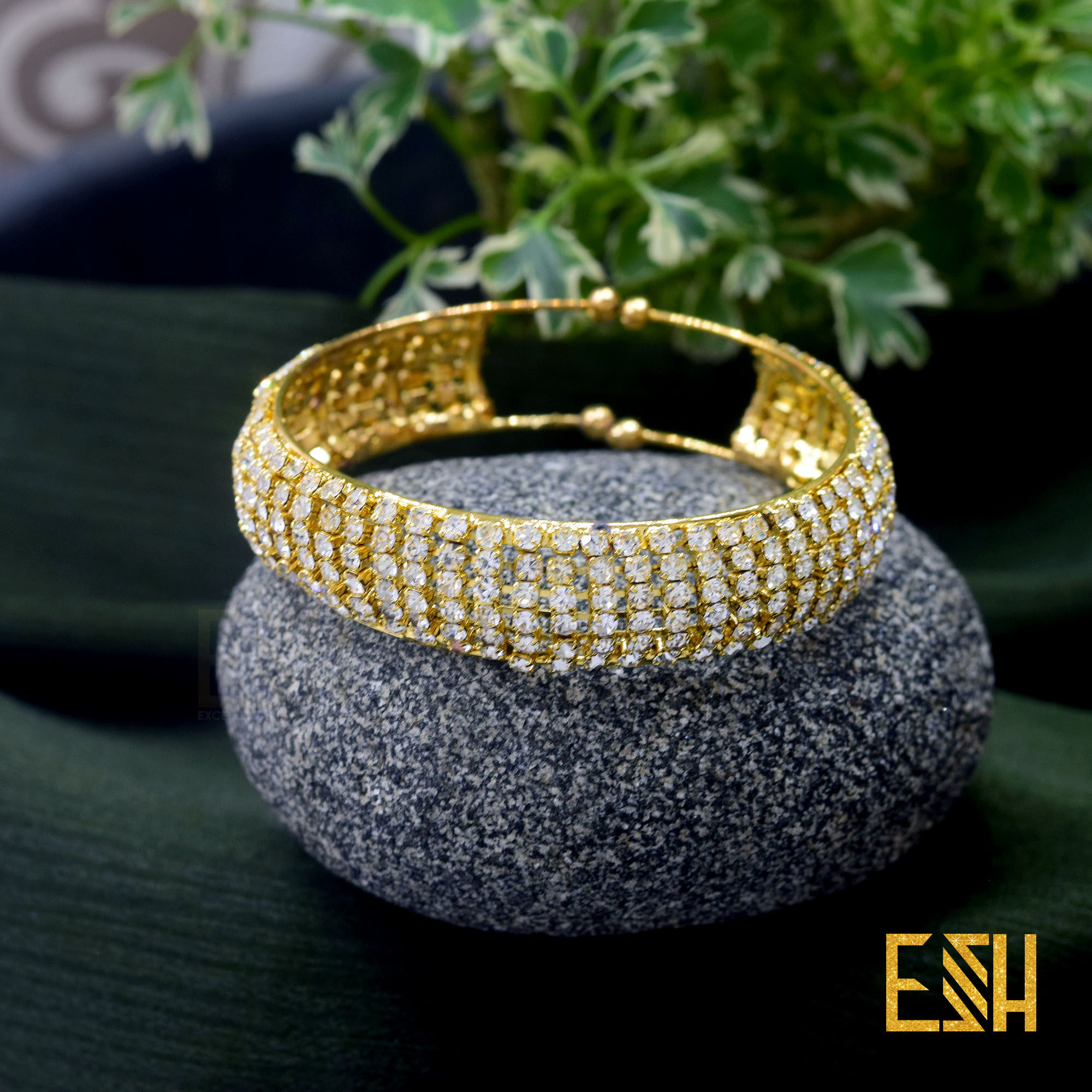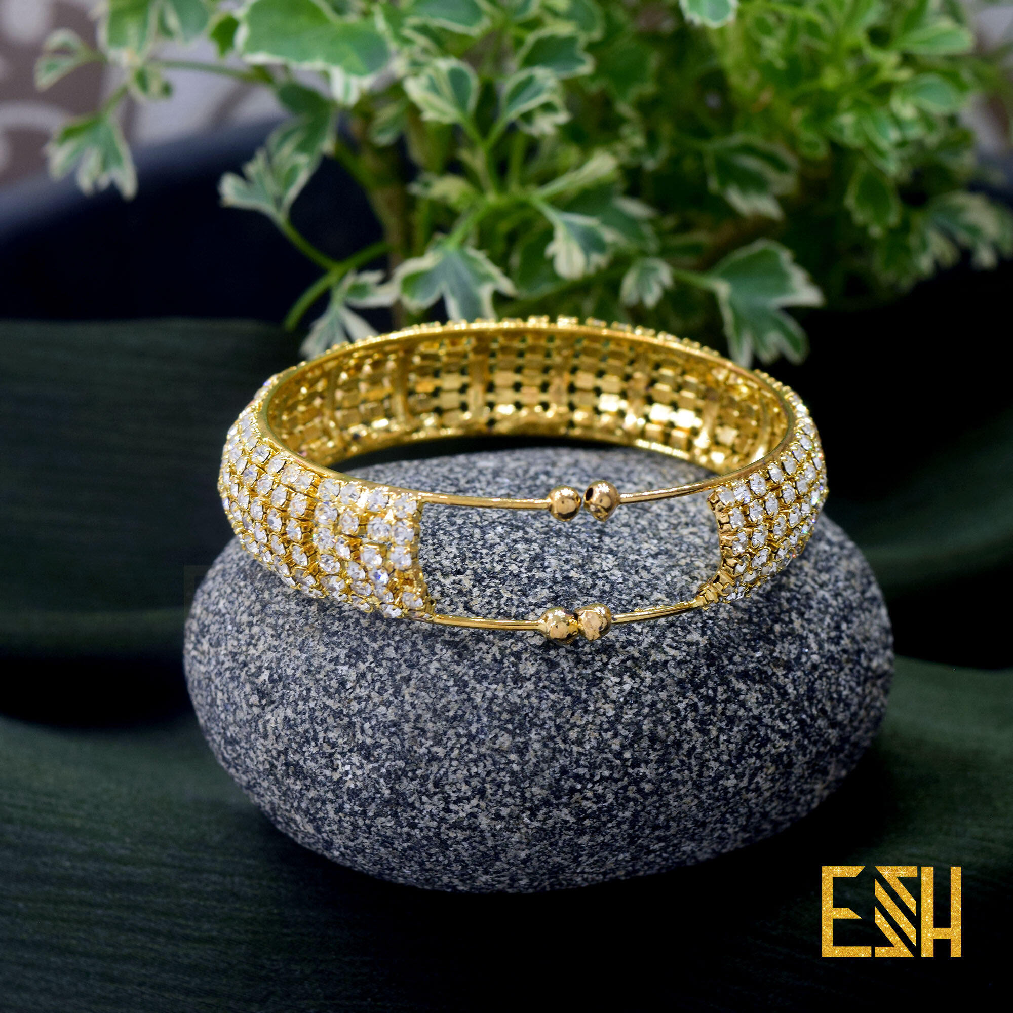 ESH Fancy Item Gold New Arrived Free Size Small Bangle With Full White Stone For Women Gift ( Fit For Any Hand )