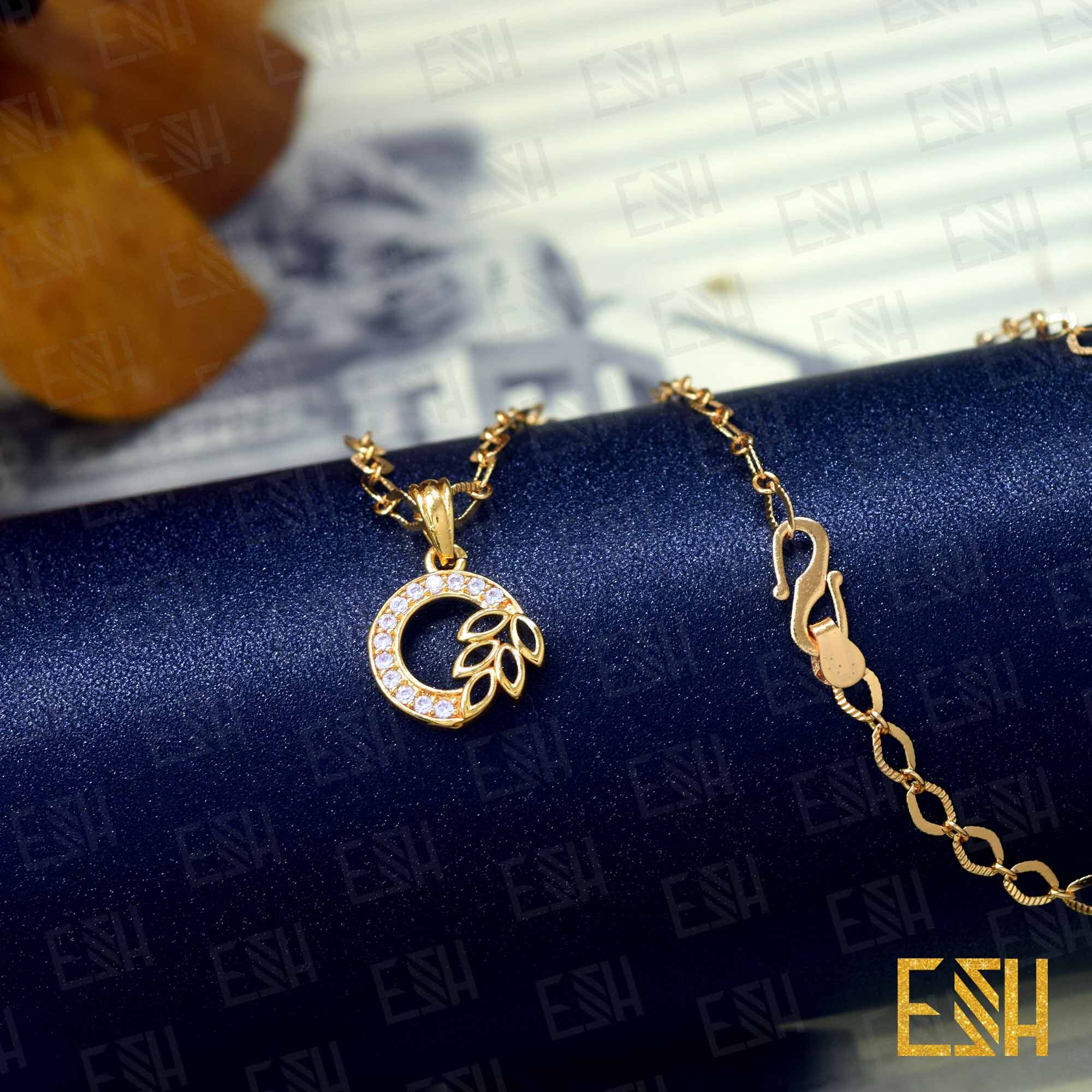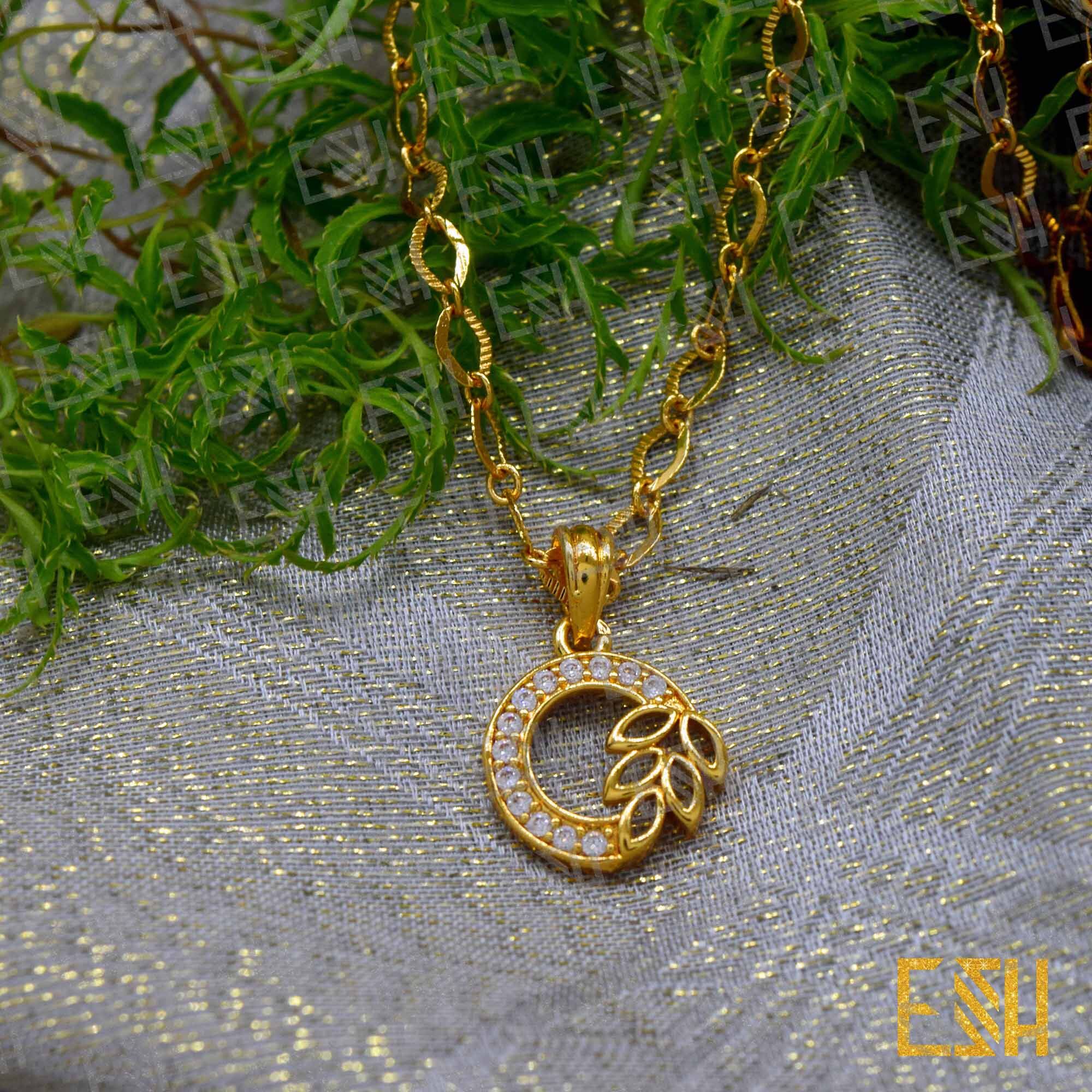 ESH Gold plated Guaranteed Stylish 04mm link Chain Beautiful Design With Leef Round Fixed Stone Pendant