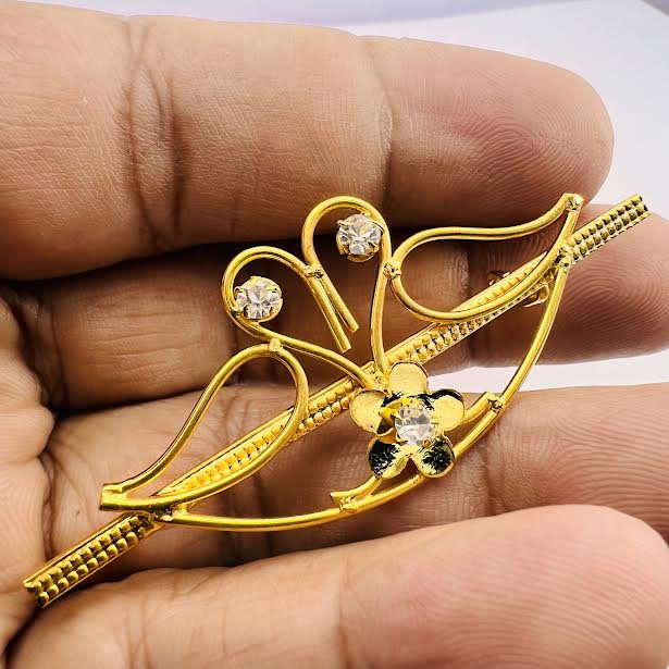 Dull gold Latest design with charm Stylish Look gold color stone rose flower and gold stone Saree Brooch with stone drop for women Original price was: Rs. 1,000.00.Current price is: Rs. 550.00.