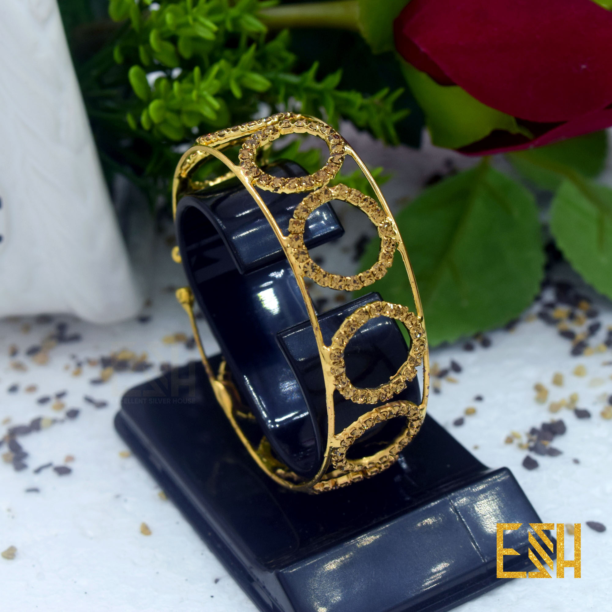 ESH Fancy Gold New Arrived Free Size Big Bangle Bracelet With Full White Stone For Women Gift ( Fit For Any Hand ) Original price was: Rs. 1,350.00.Current price is: Rs. 826.00.