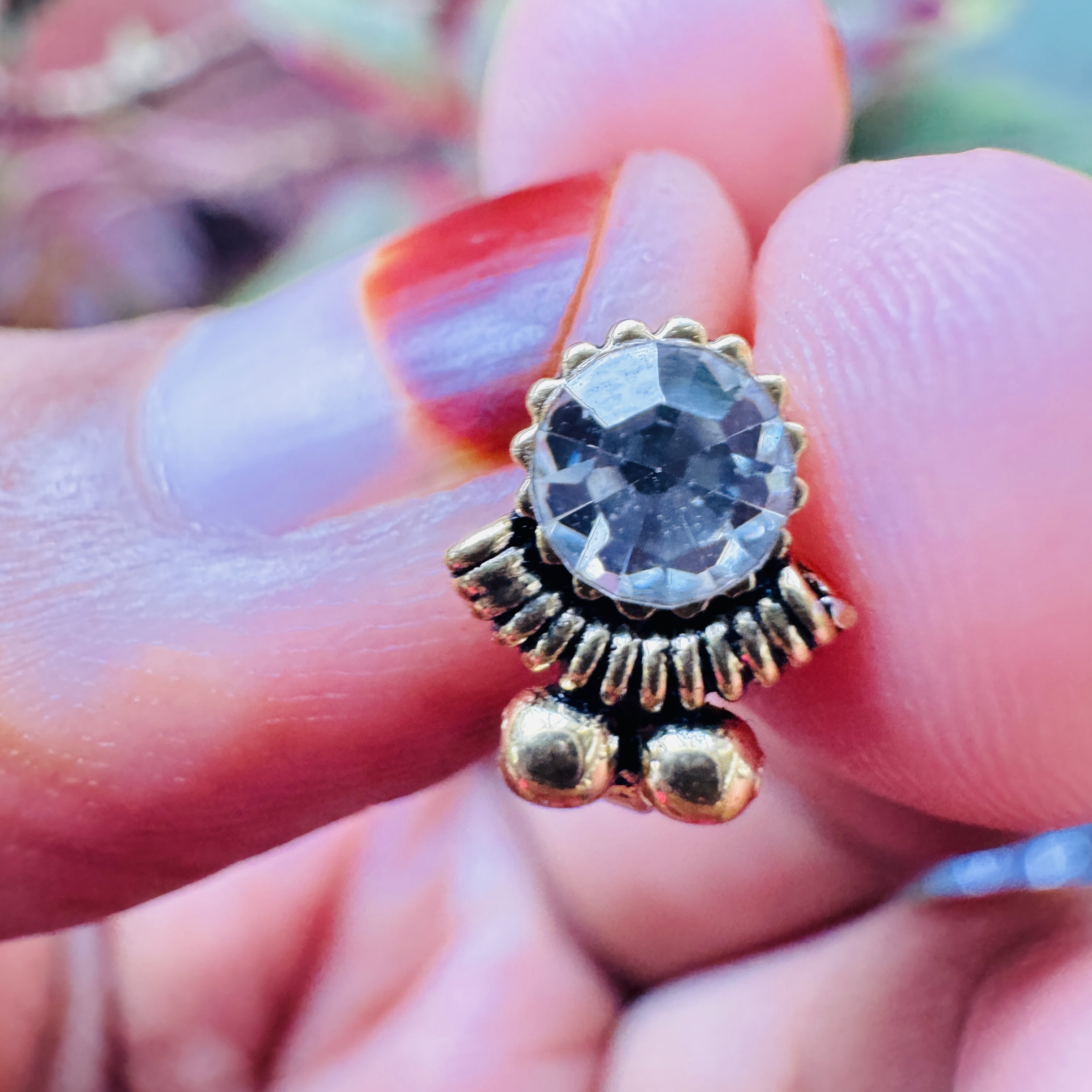 Gold and silver color Indian Traditional non-piercing Nose pin, nose ring with stone for women and girl gift items for girls