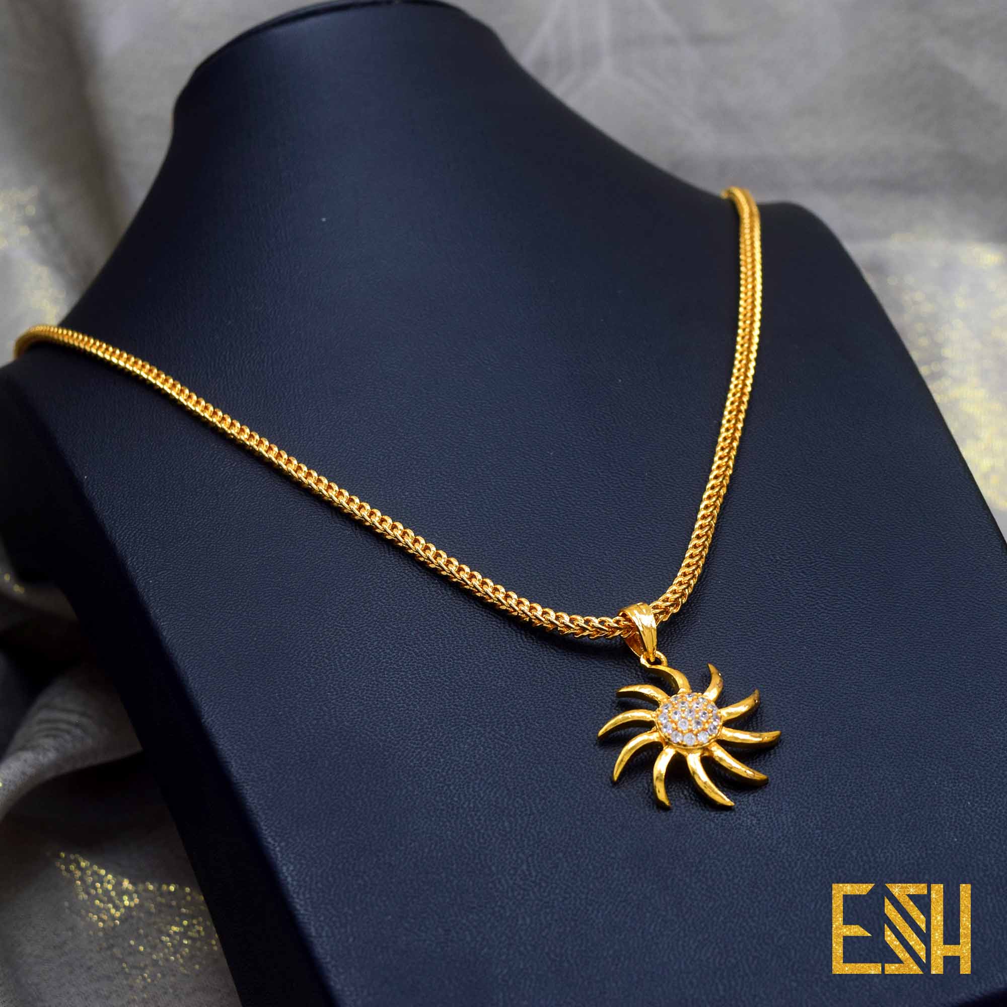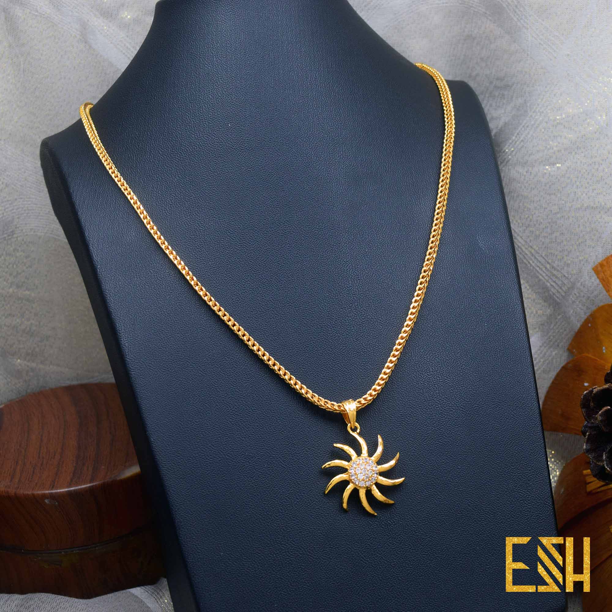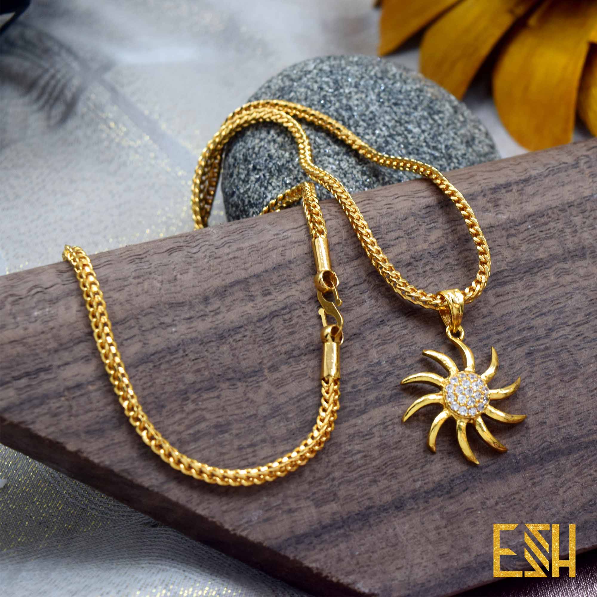 Gold Plated 18/24 Inch 3mm Singapore square fox chain with Sun Pendant Original price was: Rs. 2,550.00.Current price is: Rs. 1,990.00.