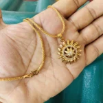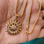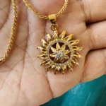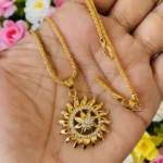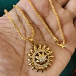 Be the first to review “Gold plated 18/24 Inch Twice rope 1.5 mm chain and Sun design large pendant with white stone for women & girl”