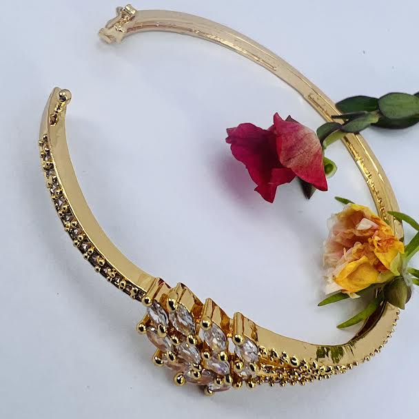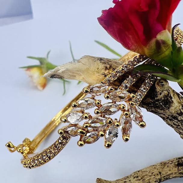Gold Plated Beautiful Fashion LEAF TYPE Free Size lock SABONA Bangle with white stone Fashion Jewelry, Gift Casual Jewelry for Women & girl