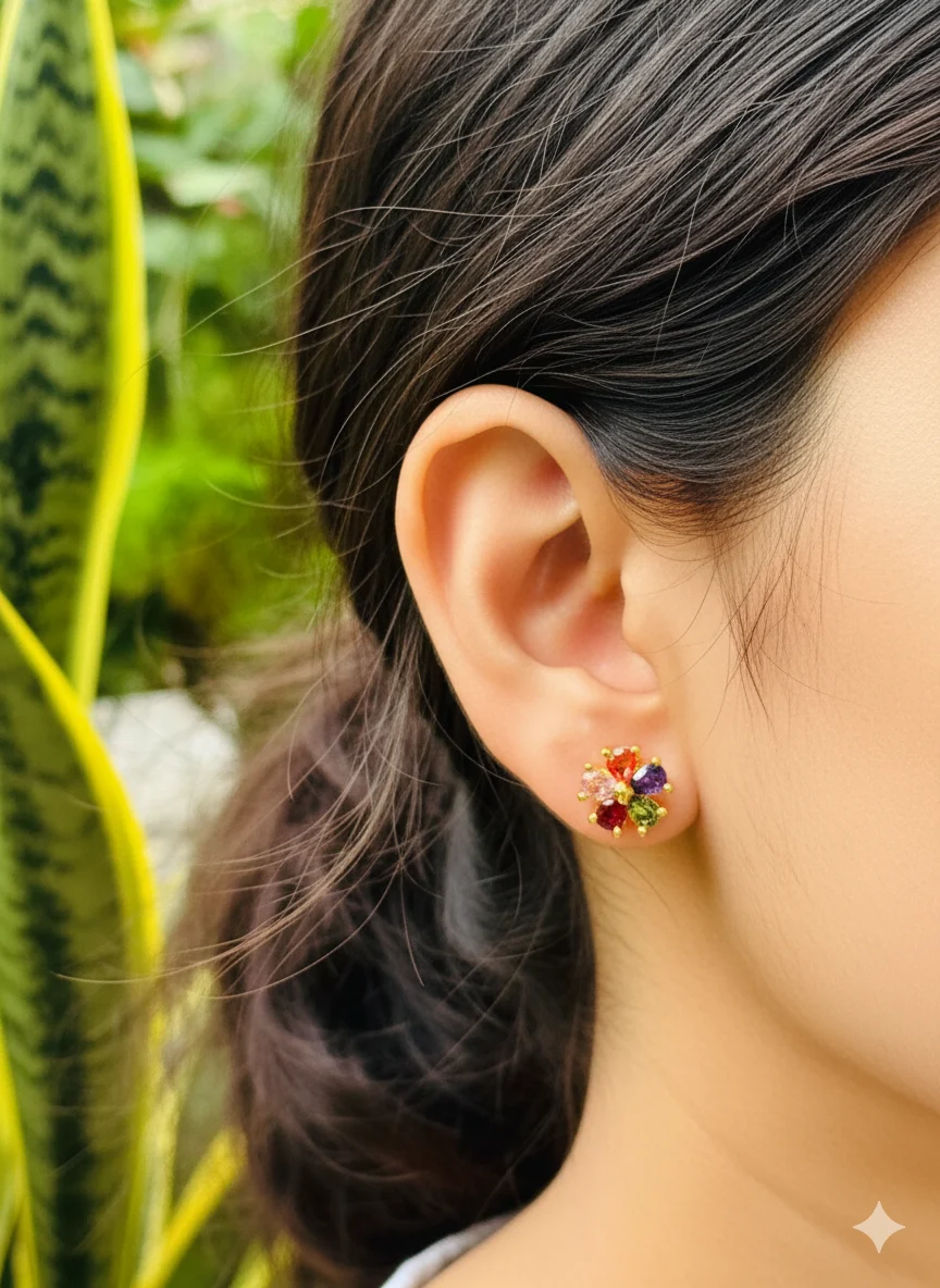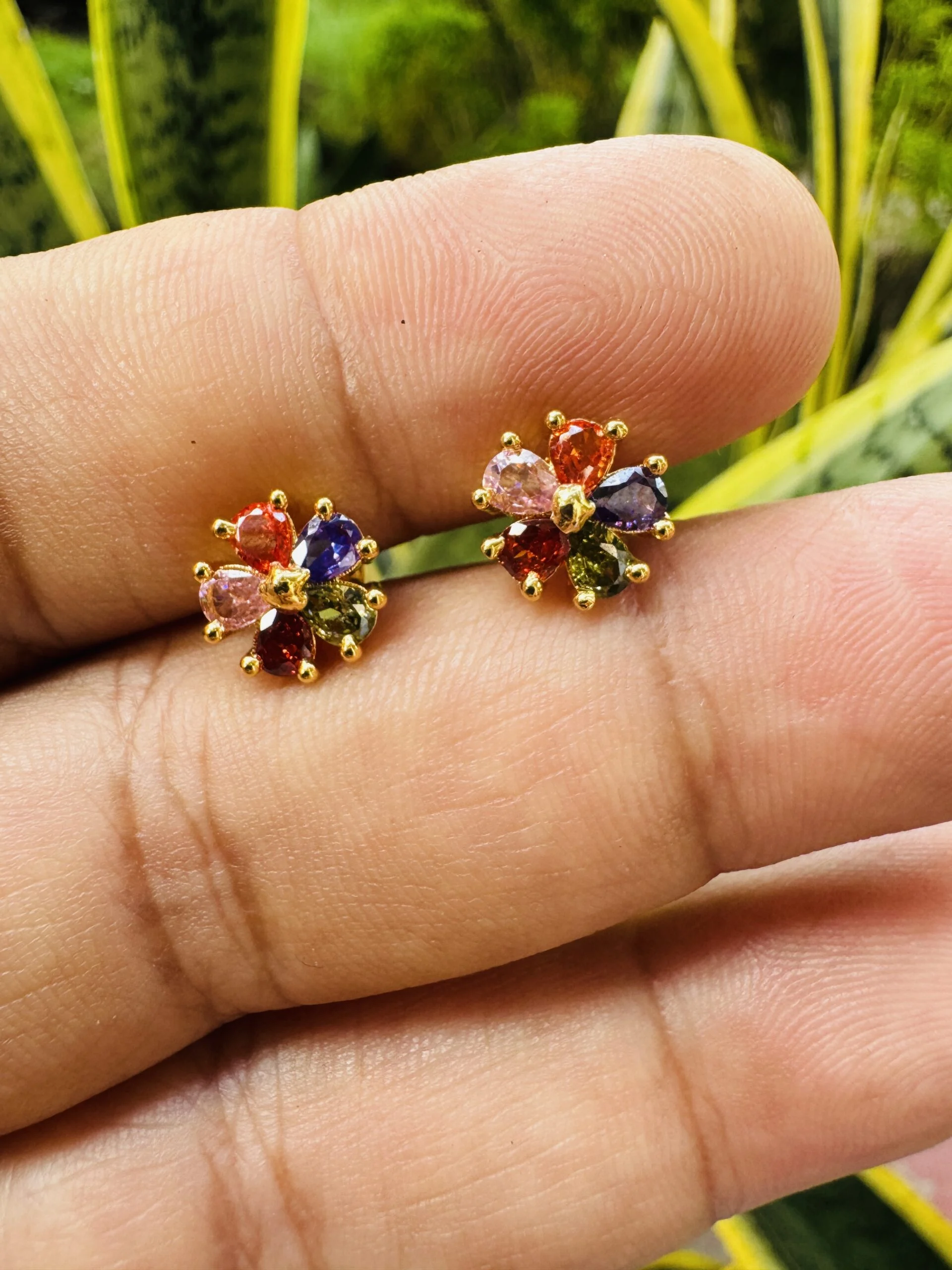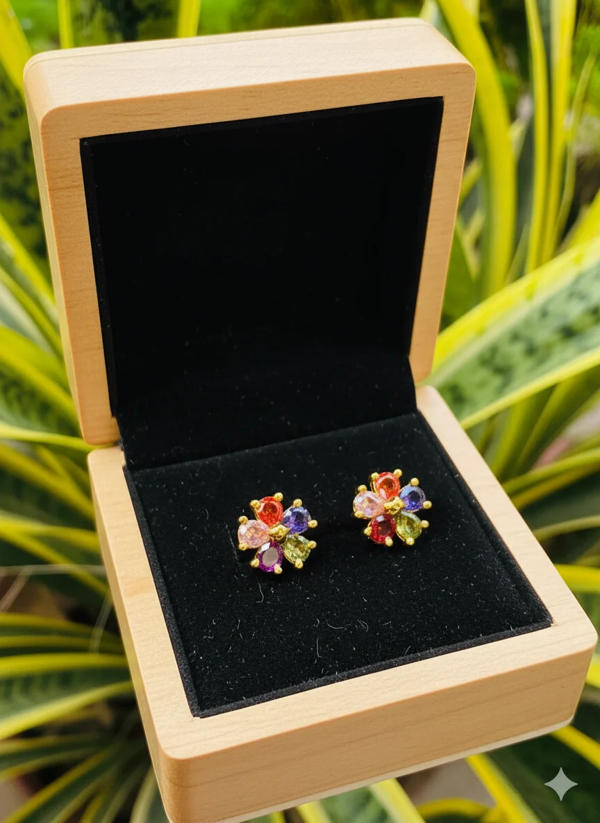 Be the first to review “Gold plated beautiful FLOWER stud earring with multi stones for women & girl”
