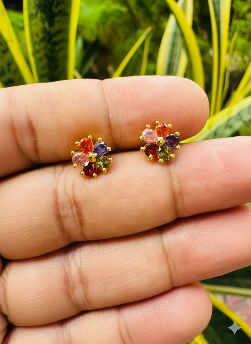 Gold plated beautiful FLOWER stud earring with multi stones for women & girl