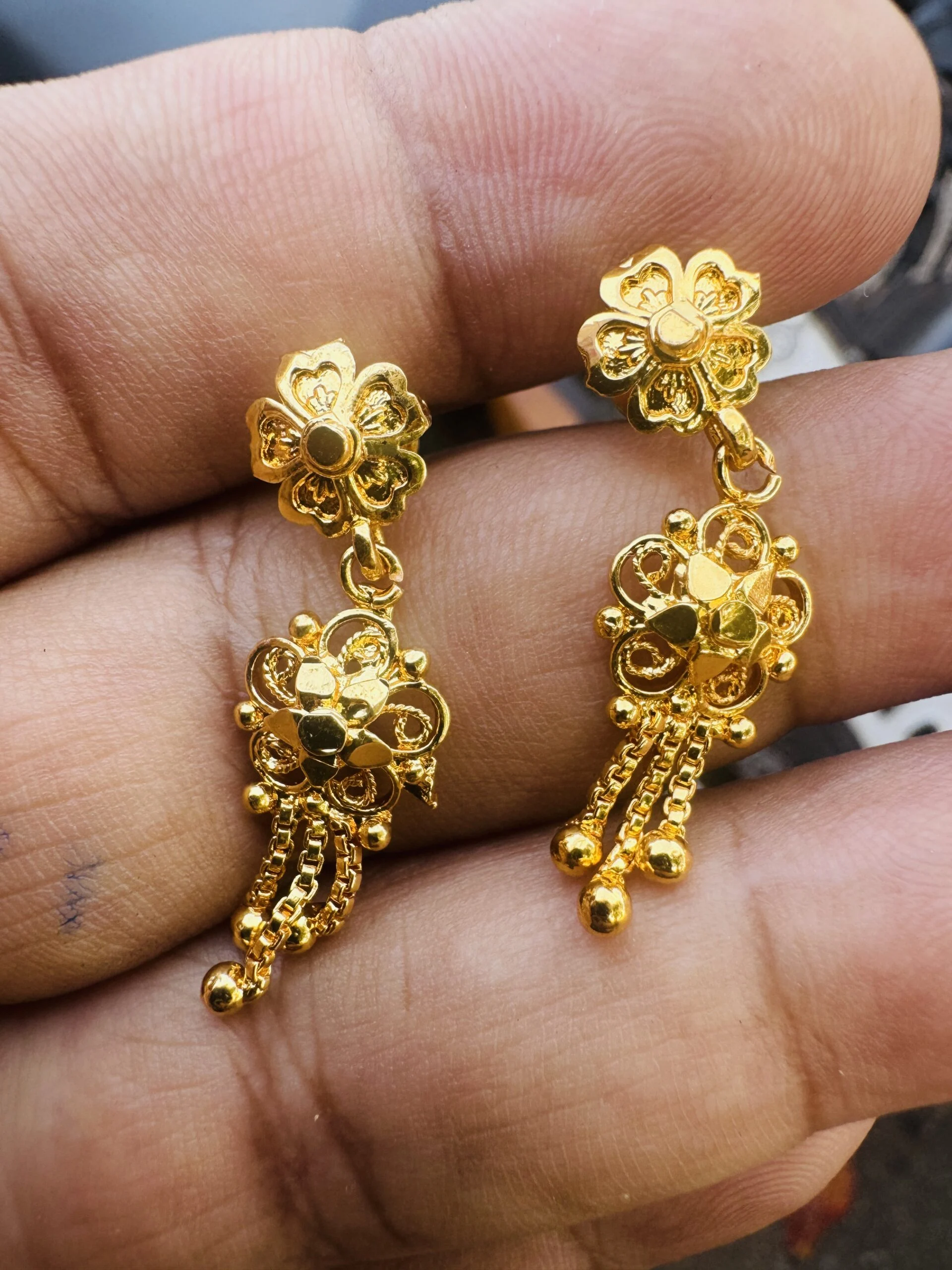 Gold plated beautiful Indian style flower tassel earring with flower head for women and girl