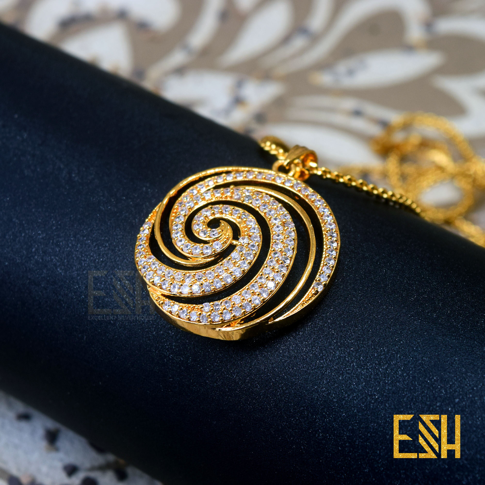 Gold Plated ESH 1.5MM Diamond Chain 18/24 Inch With Big Derana Pendant Durable Combo jewellery For Women Love Gift