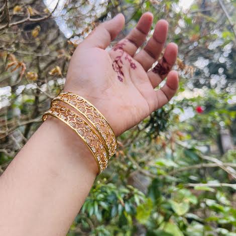 Gold plated Hight quality rich look beautiful bangle with white stone for women