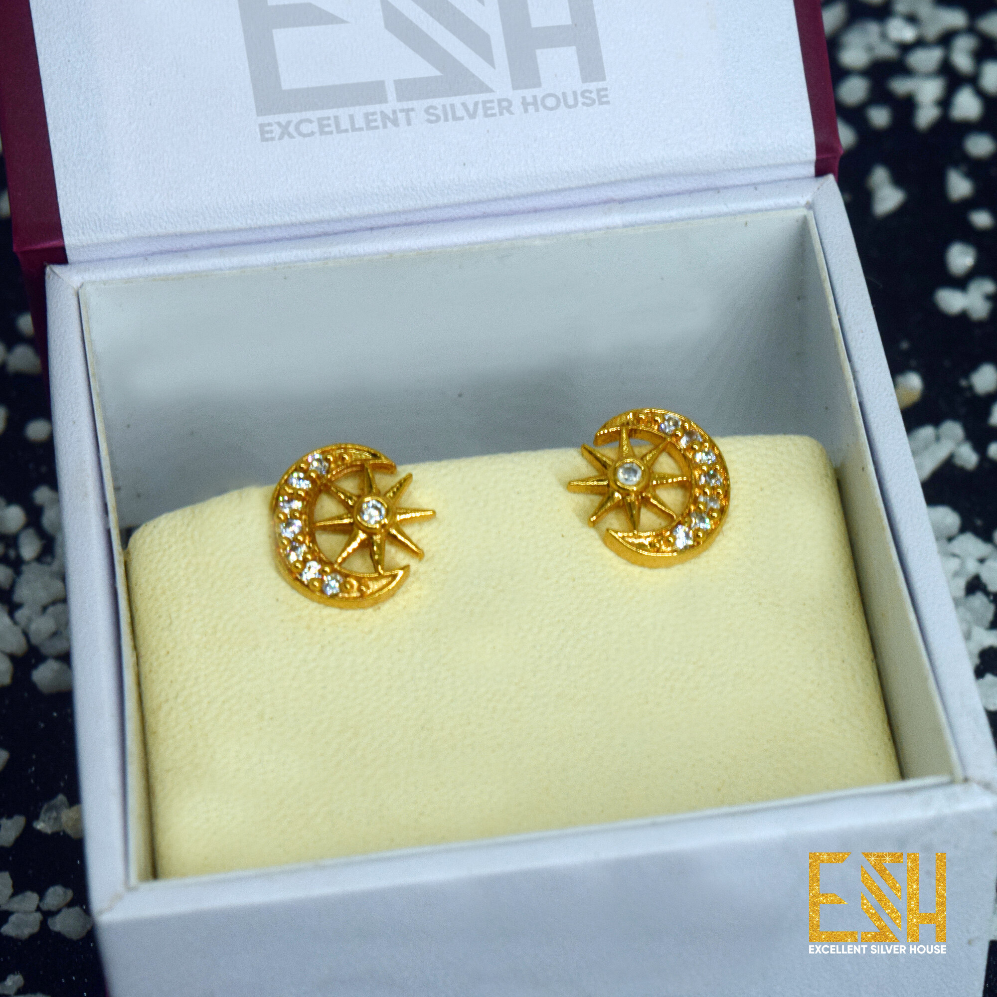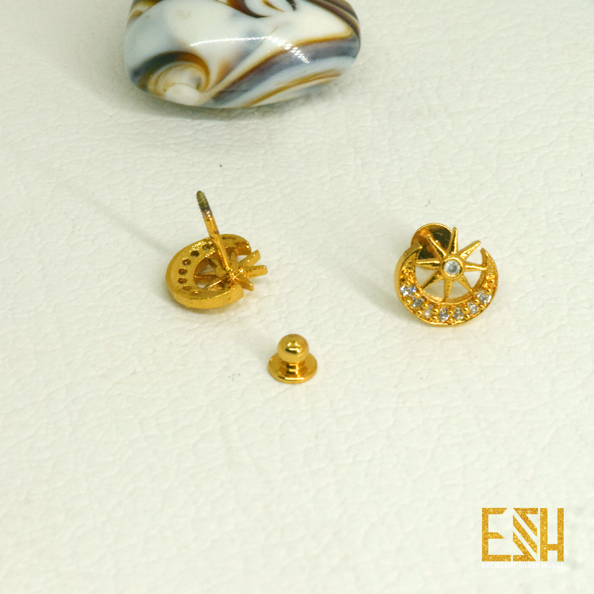 Gold Plated Modyle Stylish Moon With Star Theme Stud Earrings For Women