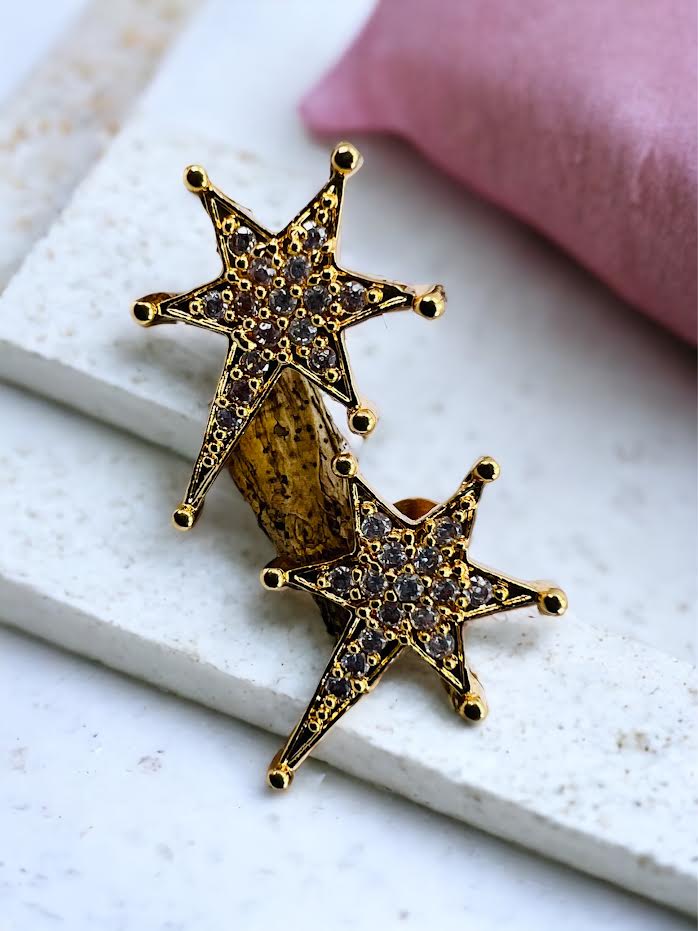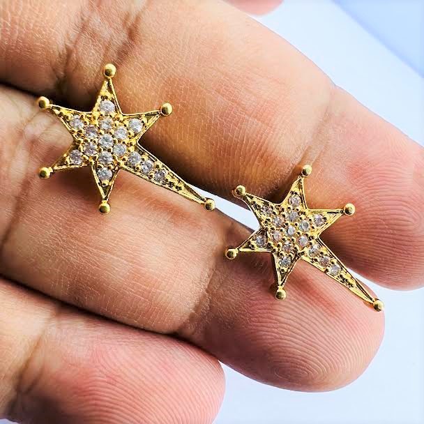 Gold plated new fashion comet theme earring with full white stone for girl and women.