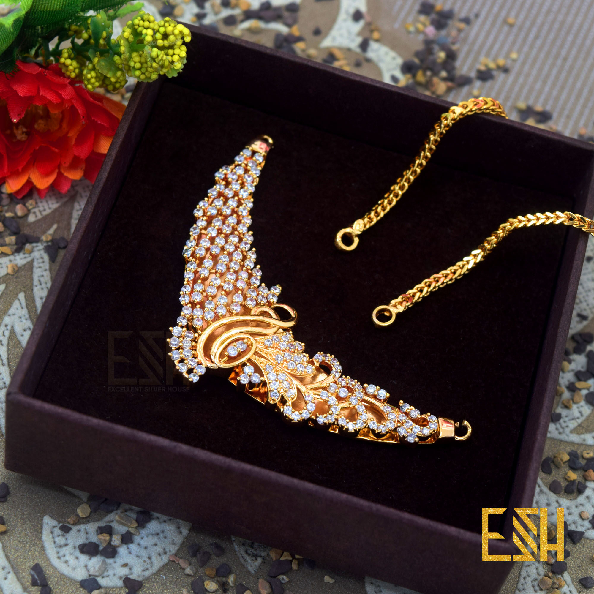 Gold Plated Traditional Bridal Sawadi Pendant With 05MM flat square Chain Long For Women & Girls