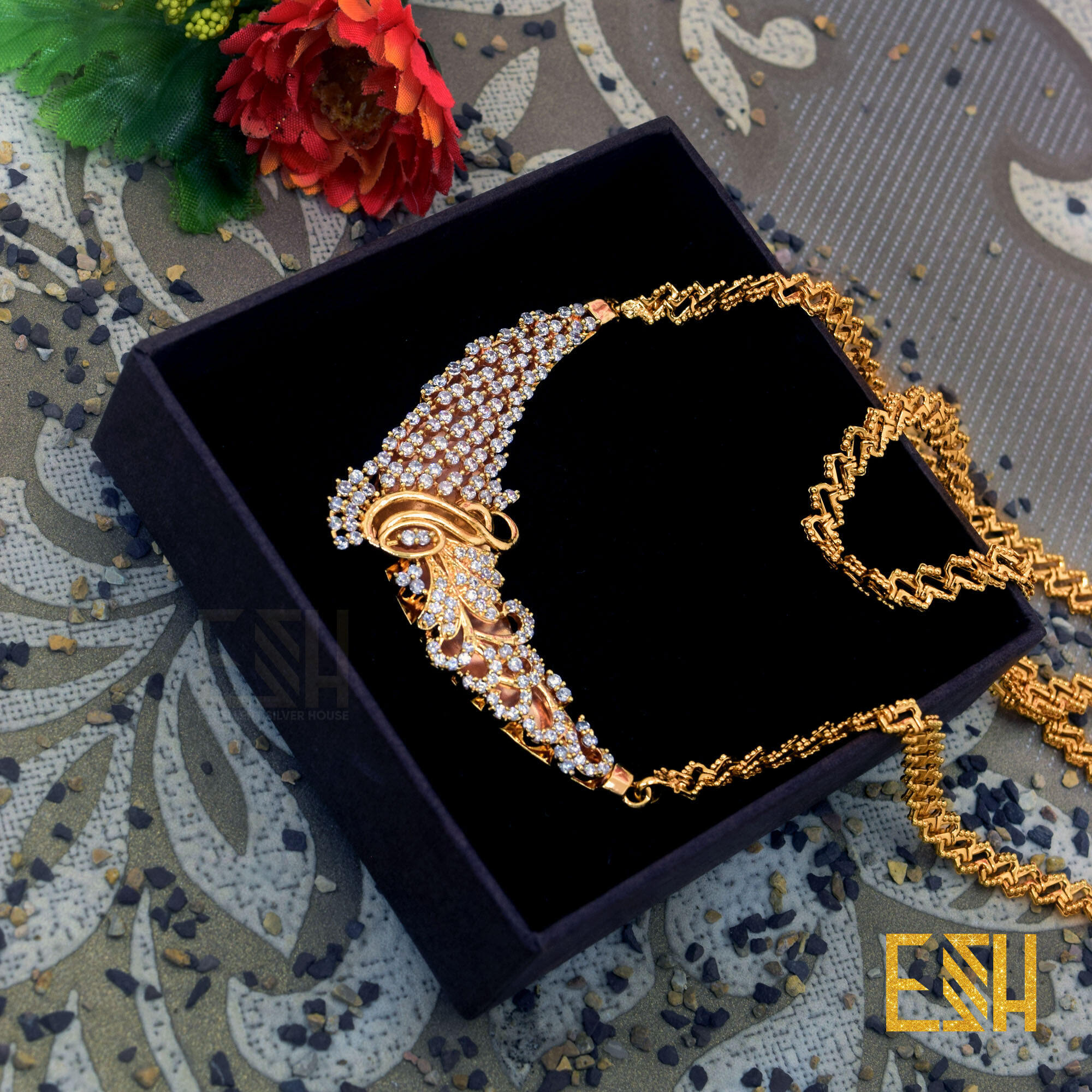 Usage: Avoid of contact with water and organic chemicals i.e. perfume sprays. Avoid using velvet boxes, and store in air-tight boxes. After use, wipe the jewellery with soft cotton cloth. First wear your makeup, perfume – then wear your jewellery. This will keep your jewellery shining for years.
