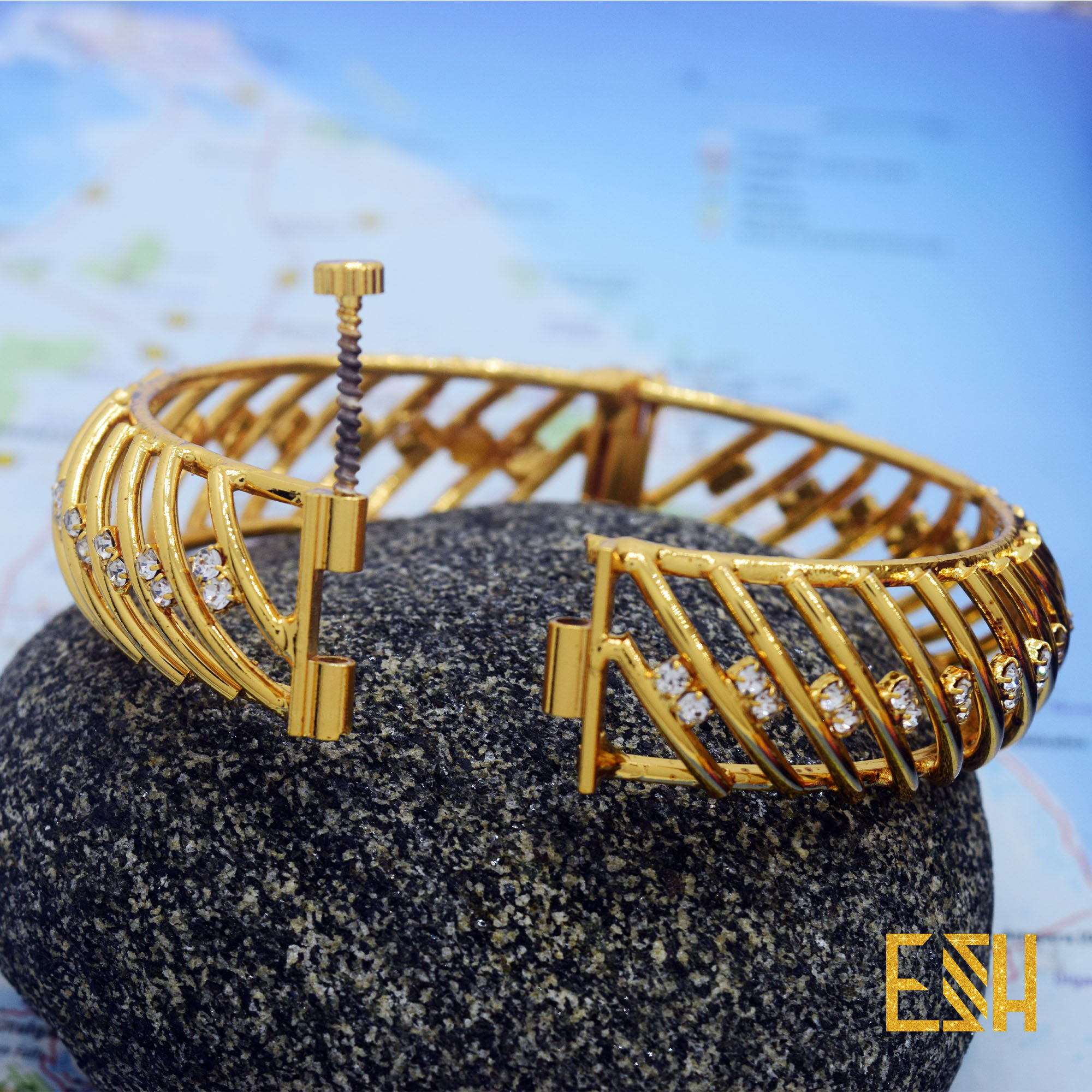 Hight Quality Fashion Gold Plated ESH Lover Stylish Scrow Lock Elegant Design Bangle With Two Stone For Women Jewelry