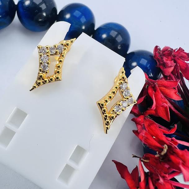 New Gold-Plated Lightweight Tear Drop Stud Beautiful Earrings fixed stone for women and girl.