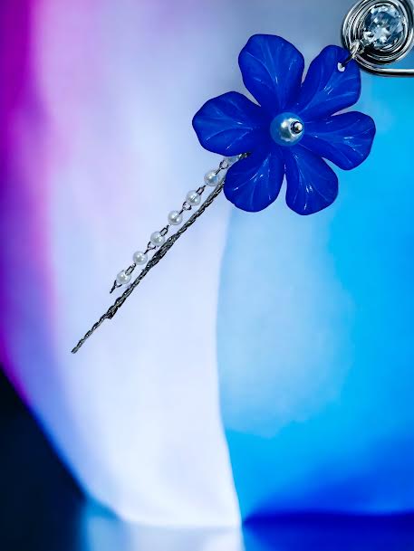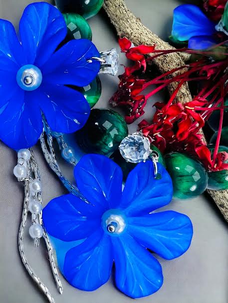 Silver plated stylish beautiful earring with blue flower and white stone pearl and silver line drop earring for women and girl