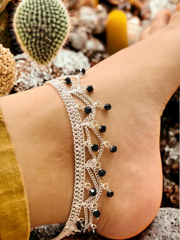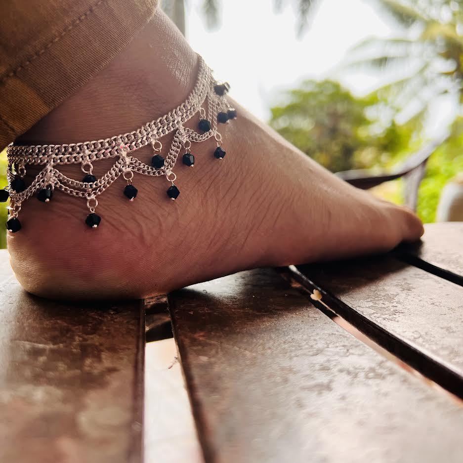 Silver Plated Traditional pair of Krishna Type Anklet, pada salan Foot Jewelry Payals Kolusu With Hanging Type Black pearl for Women gift items for girls
