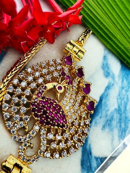 Avoid contact with heat, chemicals. Clean with dry cotton cloth. Pack in an airtight container/ pouch after use. It is advisable to wear the jewelry after makeup.