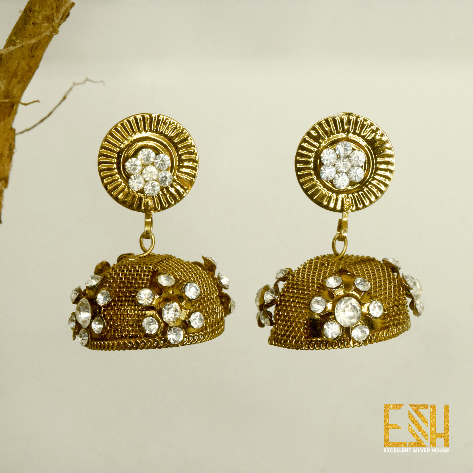 Weightless Dull Gold plated Jimikki Earrings With Stone